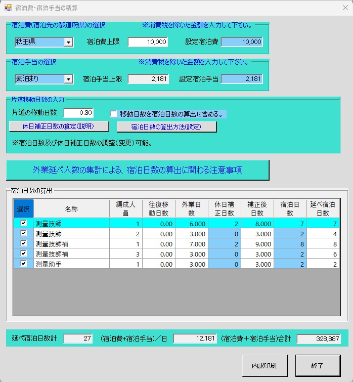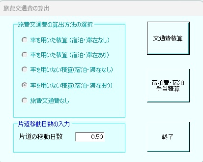 ¡Ê£²¡ËÊÒÆ»¤Î°ÜưÆü¿ô¡Ê»»½Ð¤ËɬÍפʾì¹ç¡Ë¤òÆþÎϤ·¡Ö¸òÄÌÈñÀÑ»»¡×¡¢¡Ö½ÉÇñÈñ¡¦½ÉÇñ¼êÅöÀÑ»»¡×¤ò¤½¤ì¤¾¤ì¹Ô¤¤¤Þ¤¹¡£